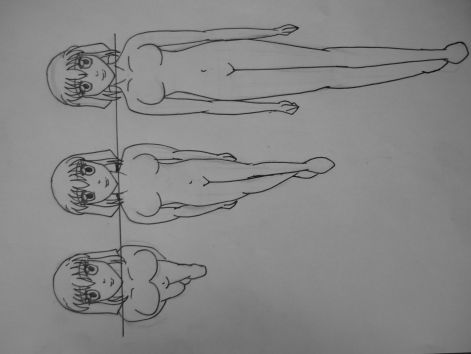 Ezt a változást lehet talán a legnehezebben eltalálni. Az ábra megmutatja neked, hogy változik meg a fej- test arány, amikor felülről ábrázolunk.